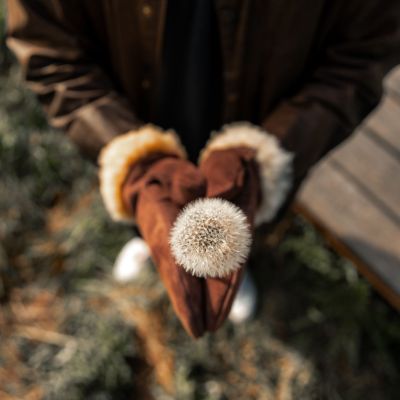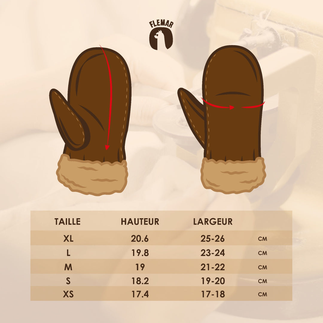 Pour la moufle Flemar, nous gardons notre recette magique : un intérieur en laine de mouton Corriedale, un extérieur en cuir souple, et une couronne en laine d'alpaga qui gardera vos poignets bien au chaud.